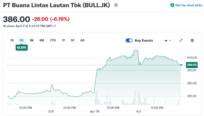 Pergerakan saham BULL juga tidak terlepas dari dinamika sektor pelayaran yang sedang mengalami reli sejak awal 2026, didorong oleh ekspektasi peningkatan permintaan energi dan keterbatasan pasokan armada global. (idxchannel)